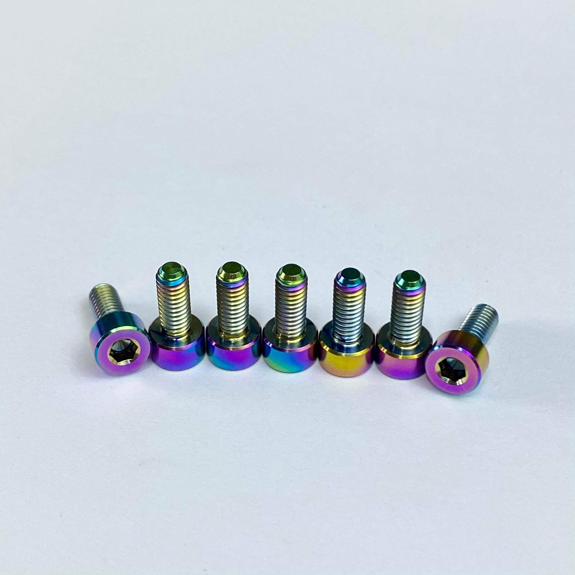 Join the high end Onewheel crowd with these titanium motor cover screws. They are as strong as steel and half the weight! A beautiful finding touch for any high end Onewheel build! Comes with all 7 cover screws.