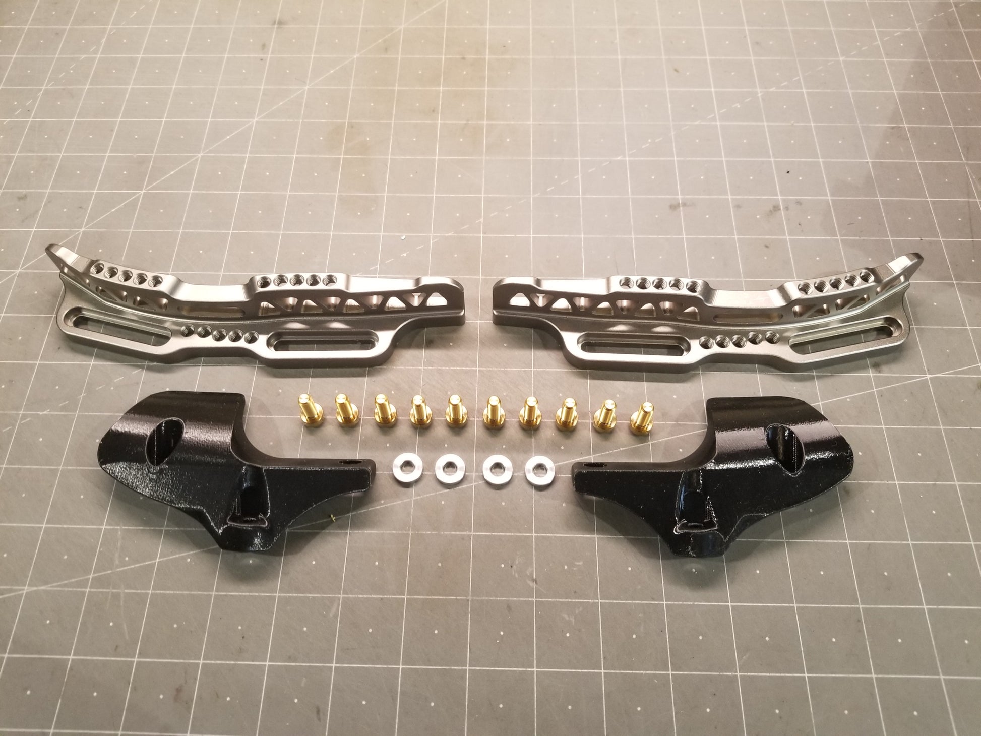 This foot hold system is the culmination of over a year of research and development. This system works with our Billet foot pads, and our V2 GT Halo foot pads! This system consists of two CNC machined 6061-T6 aluminum foot stops, aluminum spacers, screws, and plastic top hooks. We are currently developing multiple styles of top hooks as well! Various options will be available soon. The plastic top hooks can be set in 5 positions for rider preference and are easily replaceable (inexpensively) if damaged.